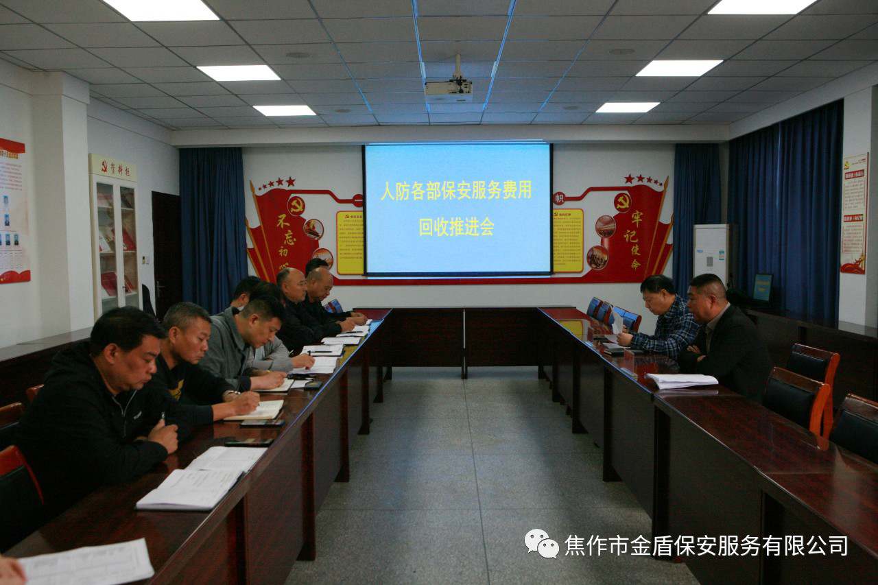 为保证各服务单位的安保服务费用及时到帐,促进公司经营收入稳步增长,促进费用回收稳步推进,10月12日上午,人防部在公司二楼会议室召开保安服务费用回收推进会,人防各部经理、财务部主任刘霞参加会议,公司党