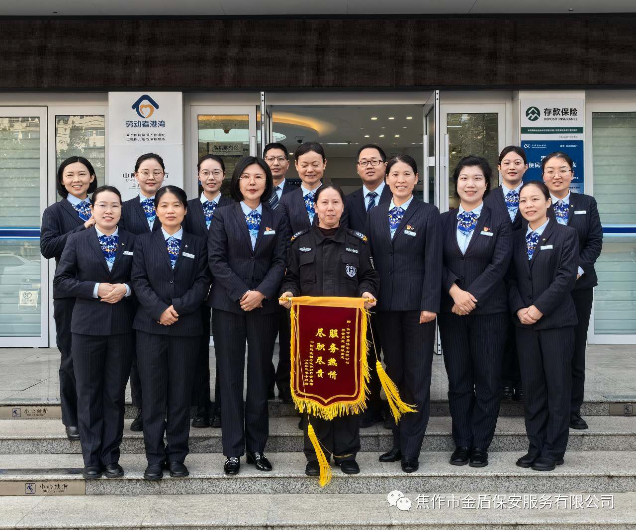 11月15日,建行焦作分行营业部举办了“感恩有你 ”授旗仪式。仪式上,营业部主任为人防六部保安员郑敏授予锦旗,颁发了荣誉,以示对公司保安工作的认可。公司长久以来与建行营业部一路同行,始终保持高质量优质