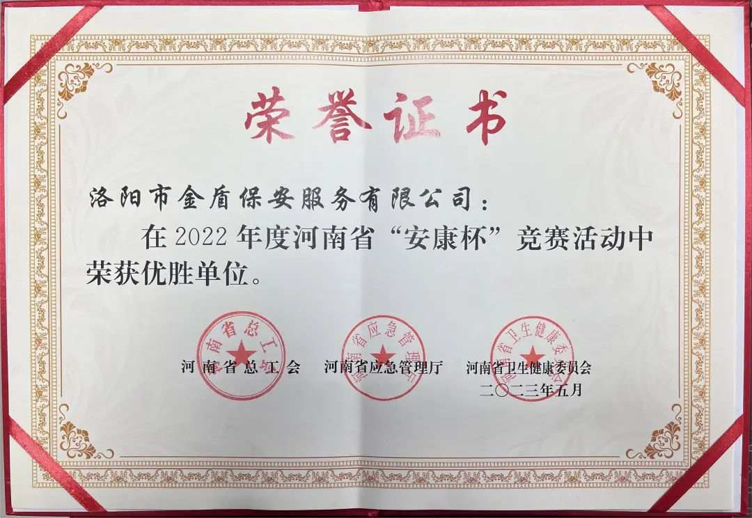 赞!金盾保安获省级安康杯 优胜单位荣誉称号 洛阳市金盾保安服务有限公司在深入开展“安康杯”竞赛活动过程中,秉承“以人为本”理念,坚持抓好安全生产管理并完善各项制度,坚持“安全第一、预防为主、综合治理”