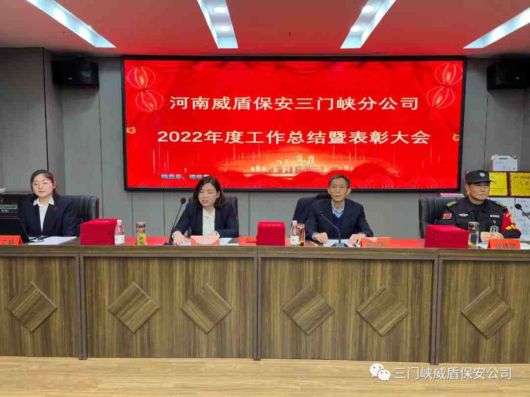 2023年3月26日下午,河南威盾保安服务有限公司三门峡分公司召开“2022年度工作总结暨表彰大会”。总经理侯海霞、工会主席张二娇,大队长张建勋、受表彰先进集体和个人以及全体员工出席本次会议。 会议全