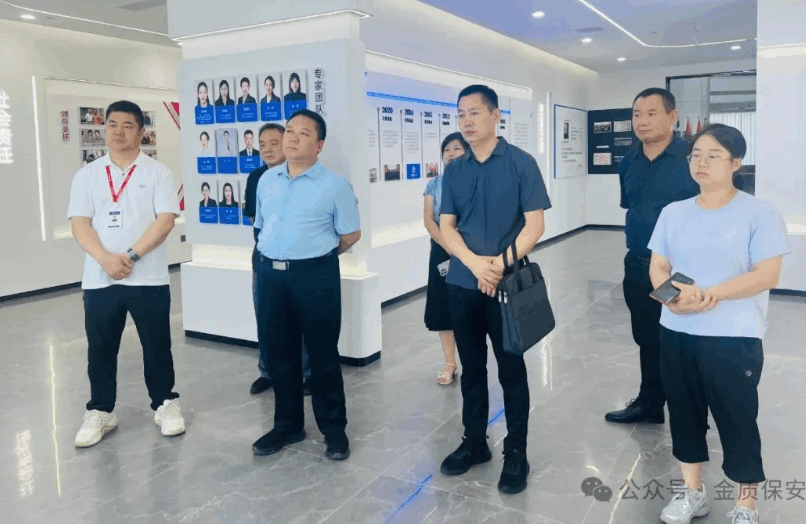 2025年7月29日,河南国资商学院研究中心副主任赵曙光、洛阳市退役军人协会副会长张海伟、河南华申保安服务有限公司总经理焦海丽(以下简称“华申保安”)等领导一行到河南金质保安服务有限公司进行参观考察(