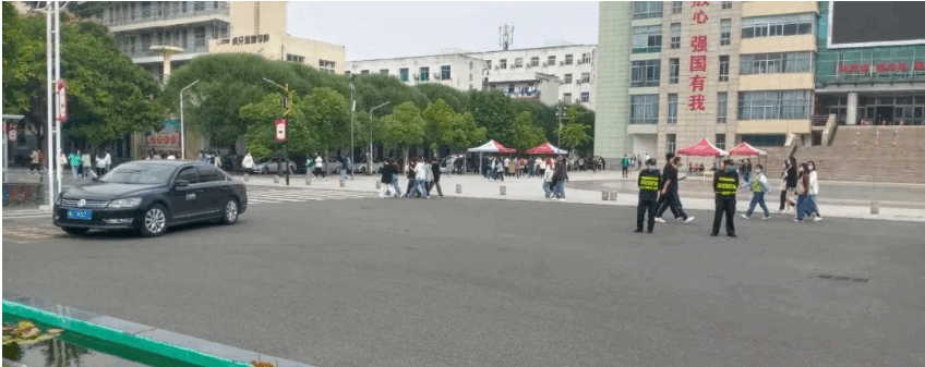 2022年10月14日,河南祥泰漯河职业技术学院保安中队、学院保卫处,联合进行反恐防暴演练,以高度警惕,守护校园平安,以安全保证,迎接党的二十大胜利召开。 上午十点,学生们课间活动轻松的气氛被急迫的呼