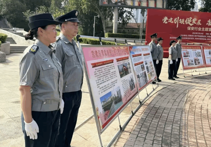 7月24日清晨,郑州市紫荆山公园广场人头攒动,“党建引领促发展,凝心聚力谱新篇”的主题标语格外醒目。 河南正大护卫保安服务有限公司作为20余家参展企业之一,带着两块精心制作的展板、5名身着整齐制服的队