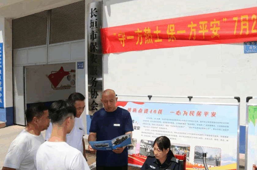 7月24日,是公安部及中国保安协会联合确认的“全国保安主题宣传日”,它承载着保安队伍“7天×24小时”坚守的使命与担当。在这个特殊的日子里,长垣市保安协会组织开展了主题宣传活动。 活动现场悬挂着“守一