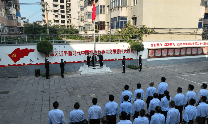 为热烈庆祝中华人民共和国成立76周年,凝聚奋进力量,9月29日上午,安阳洹河保安在办公楼前隆重举行国庆升旗仪式。安阳洹河保安在家领导班子和全体职工参加仪式。安阳洹河保安党委副书记、总经理魏东出席仪式并