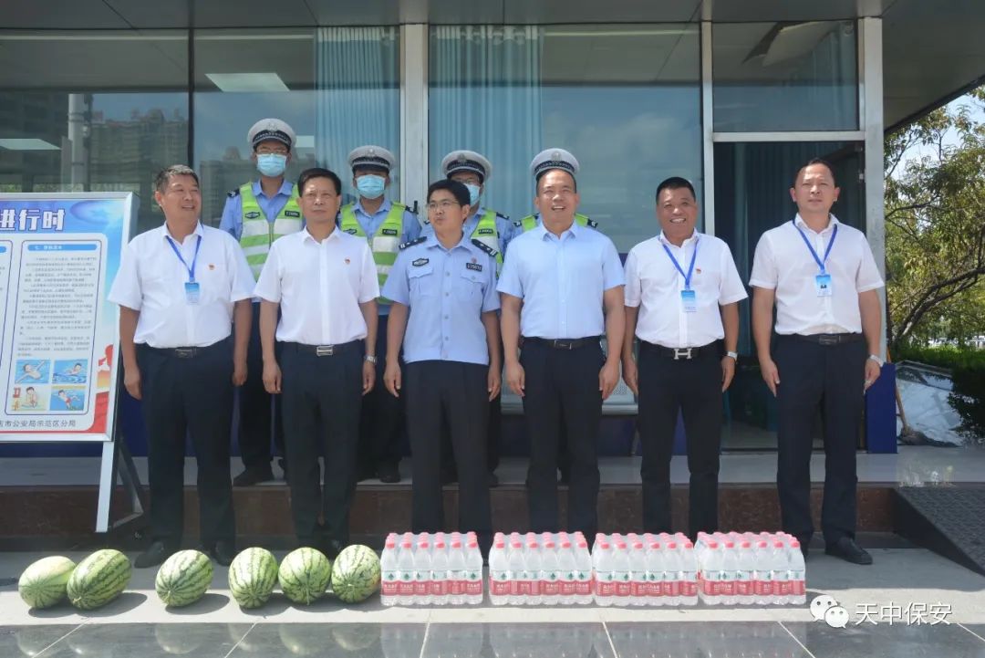 烈日当空,骄阳似火。近期我市迎来持续高温天气,8月11日上午,驻马店市保安服务有限公司总经理张建辉,公司党总支副书记魏炜,副总经理邓继国、张延春,与公司机关、分公司机关相关人员一起,先后前往高铁站辅警