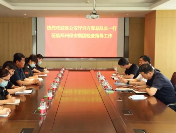 2022年6月9日,河南省公安厅特警总队总队长、省保安协会常务副会长许方军一行来到郑州市保安服务集团有限公司检查指导工作。集团公司党委书记、董事长兼总经理、省保协副会长王保友全程陪同检查。 许方军总队