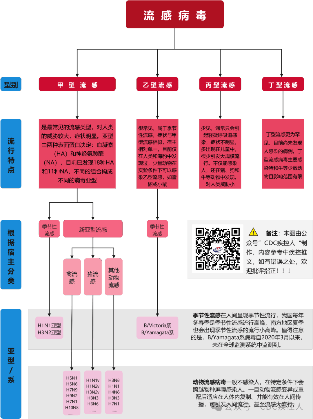 甲流、乙流、禽流感、新亚型流感,有什么不同?→一图看懂!