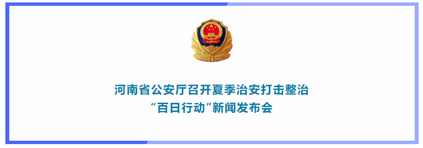 8月23日,河南省公安厅召开新闻发布会,通报河南公安机关夏季治安打击整治“百日行动”开展情况及成效。6月25日公安部在全国公安机关部署开展夏季治安打击整治“百日行动”以来,河南公安机关听令而行、全警动