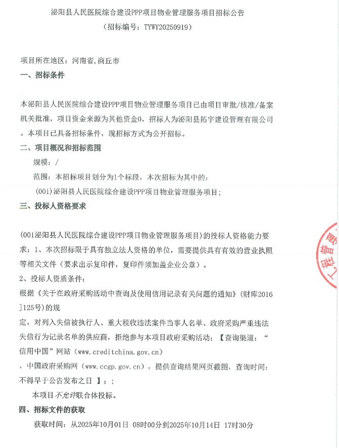 项目名称:兰考县国电投新能源产业园二期项目 采购单位名称:五冶集团上海有限公司 采购方式:公开招标 采购内容:中国五冶兰考县国电投新能源产业园二期项目安保服务 预计采购时间:2025-09-26 联系