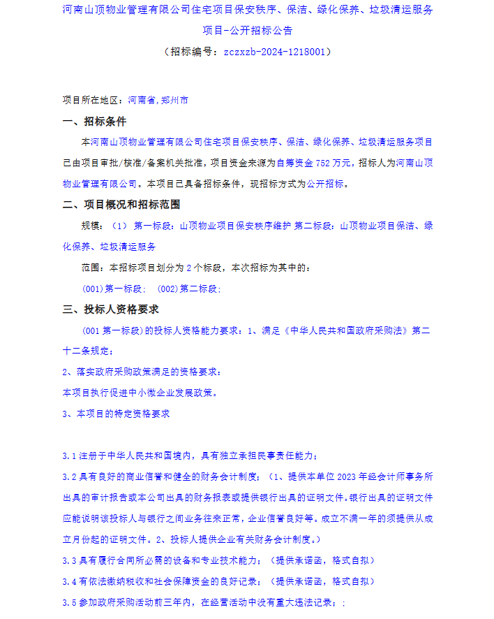 大香山文博园保洁、保安服务招标项目公开招标公告 大香山文博园保洁、保安服务招标项目已具备招标条件。汇龙工程咨询有限公司受平顶山市卓信产业运营管理有限责任公司的委托,对本项目进行公开招标,欢迎符合相关条