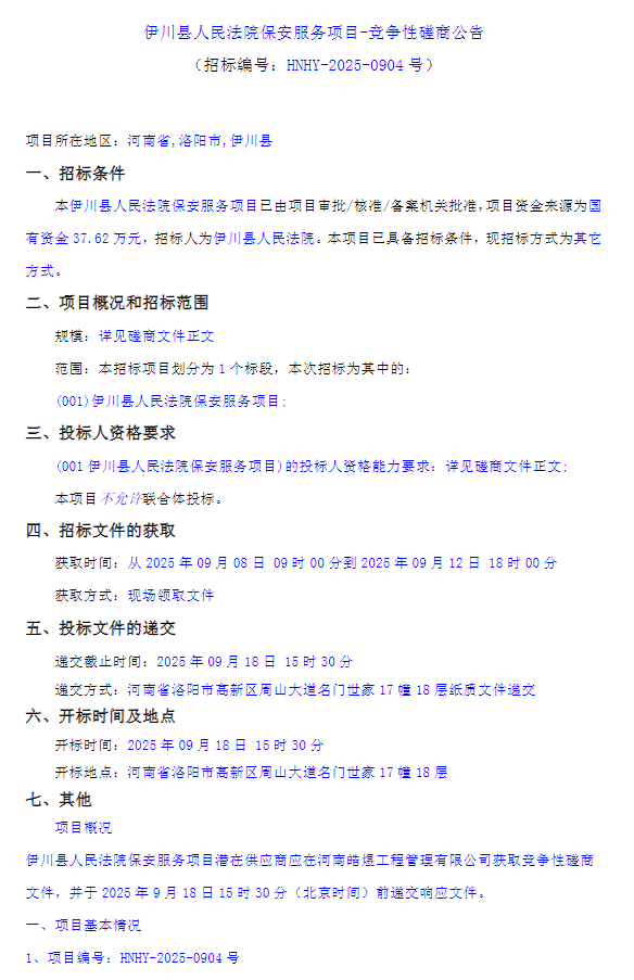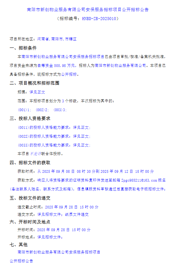 项目概况 周口市川汇区教育体育局原港区学校保安服务项目招标项目的潜在投标人应在周口市公共资源交易中心网(http://jyzx.zhoukou.gov.cn)获取招标文件,并于2025年09月17日1