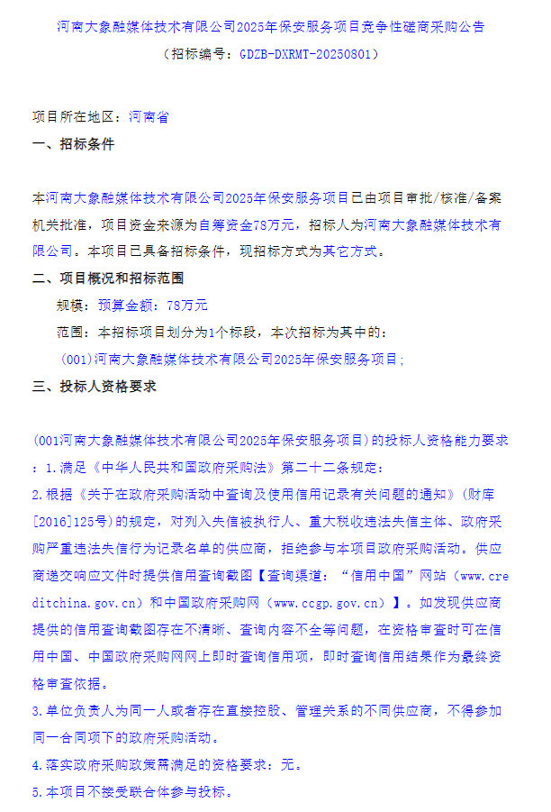 招标公告 中国平煤神马控股集团有限公司现代服务分公司遴选物业服务商和保安服务商招标公告 招标公告 1.招标条件 本招标项目为中国平煤神马控股集团有限公司现代服务分公司遴选物业服务商和保安服务商,已由有