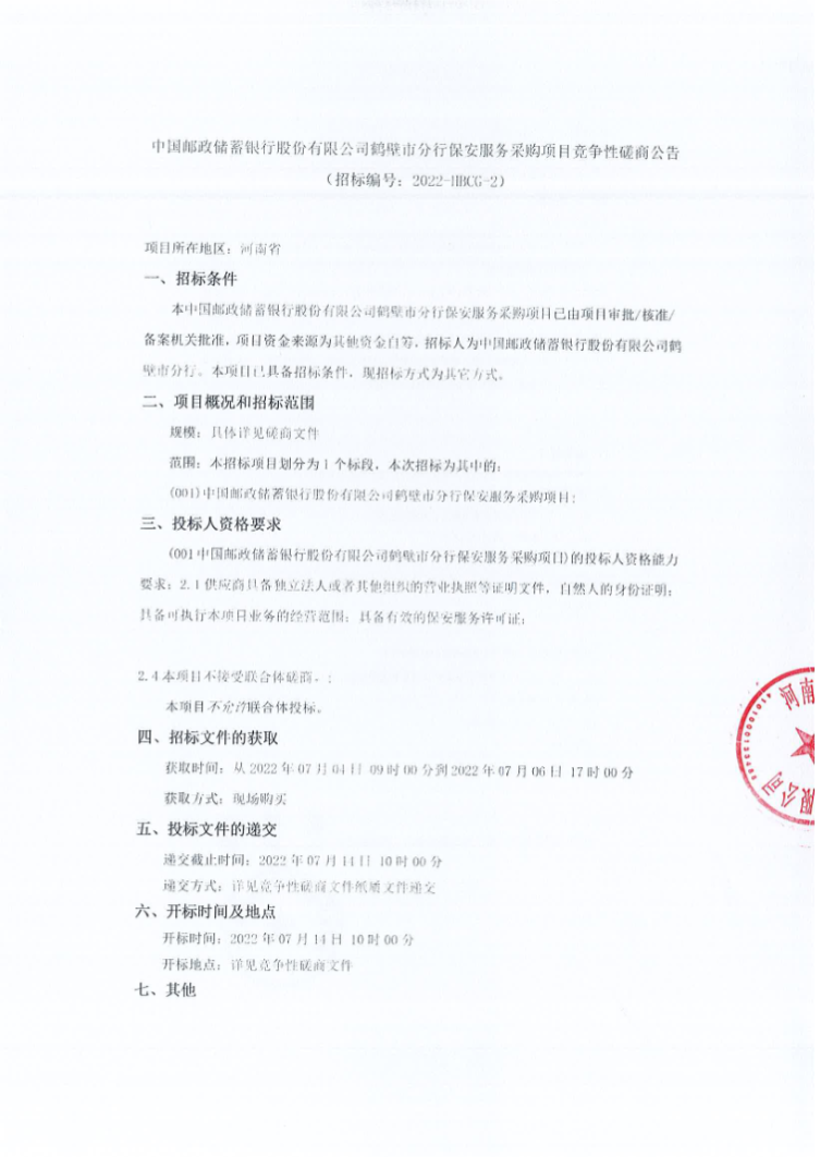 项目编号:HNZB[2022]N0577号 河南招标采购服务有限公司受河南省实验幼儿园的委托,就其保安服务采购项目进行竞争性磋商,现邀请合格的供应商参加。 一、采购项目基本情况: 1.项目名称:河南省