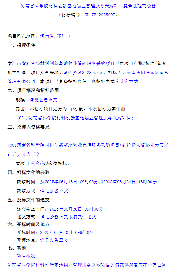 项目概况 河南科技大学2025年-2027年保安服务项目招标项目的潜在投标人应在河南省公共资源交易中心网(hnsggzyjy.henan.gov.cn)。获取招标文件,并于2025年07月10日09时