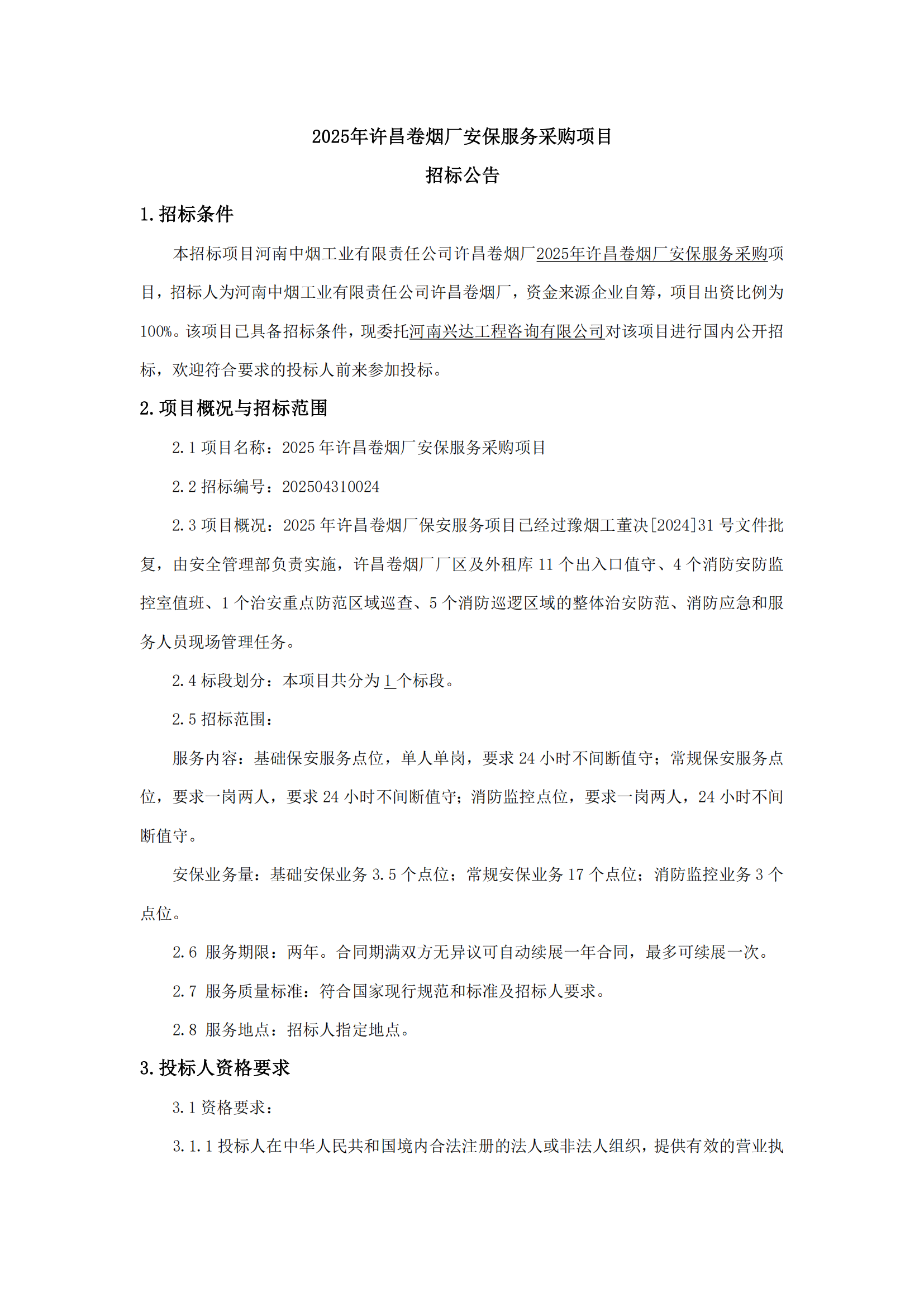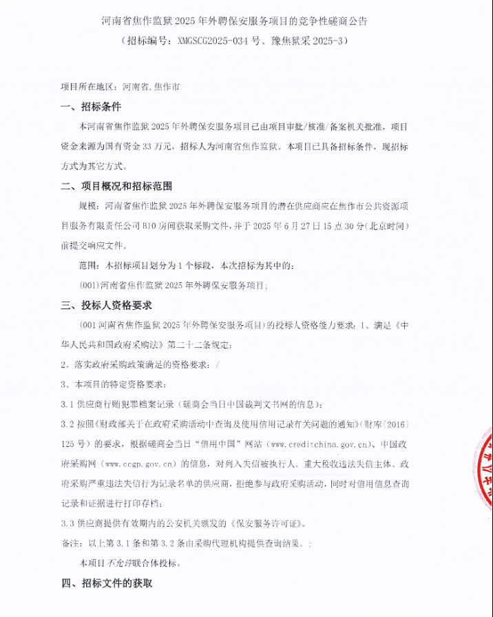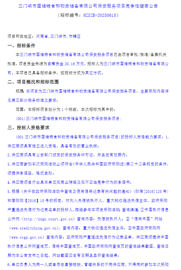 中国银行股份有限公司信阳分行现就中国银行股份有限公司信阳分行潢川支行保安服务项目进行采购,诚邀有意向者参加本项目,且满足合格供应商基本资质要求的供应商参加。 一、项目名称:中国银行股份有限公司信阳分行