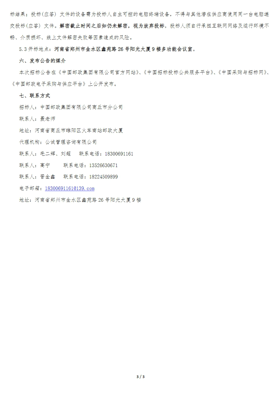 【中国邮政集团有限公司商丘市分公司保安服务业务外包项目】招标公告