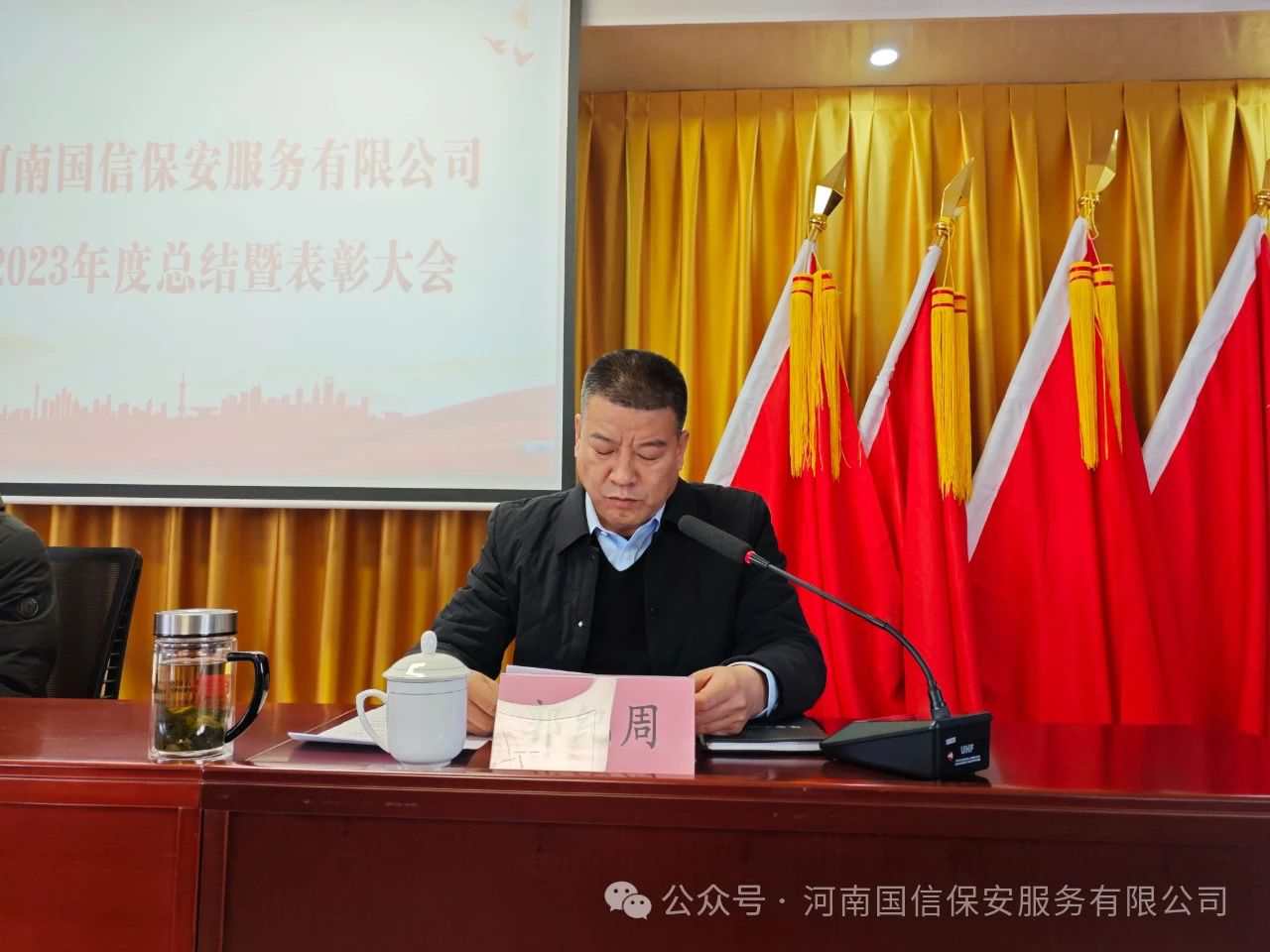 会上,河南国信保安服务有限公司党支部书记、总经理郭纪周对国信保安2023年工作予以总结并部署了2024年重点工作。