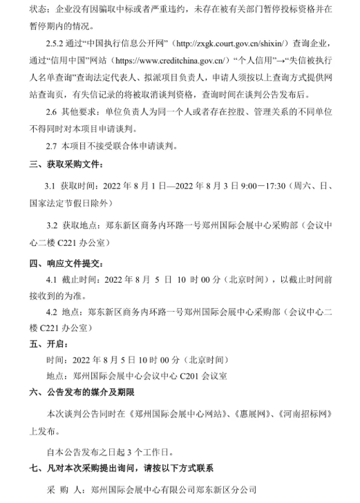 郑州国际会展中心防疫安保项目竞争性谈判公告
