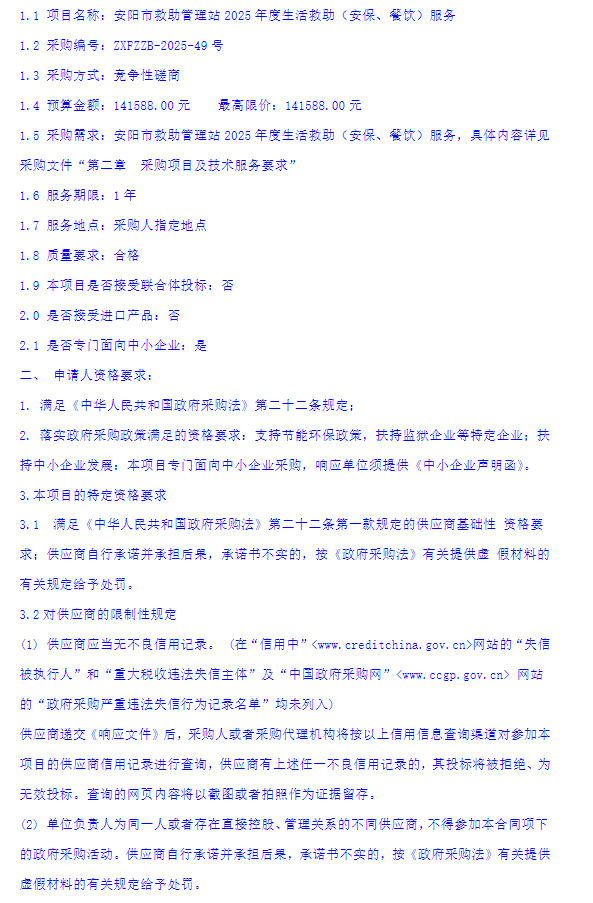 安阳市救助管理站2025年度生活救助(安保、餐饮)服务竞争性磋商公告