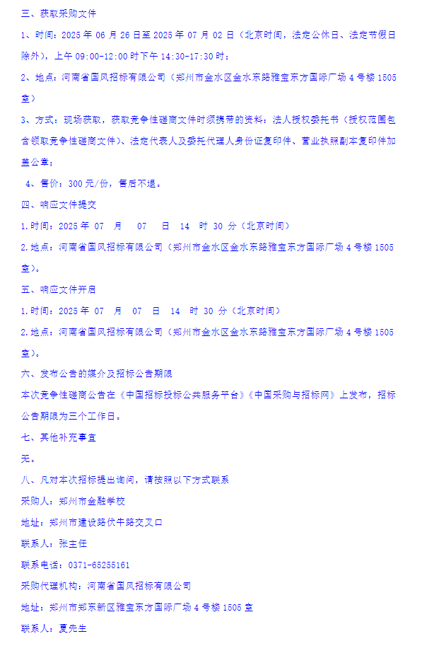 郑州市金融学校2025-2026年度保安服务项目竞争性磋商公告