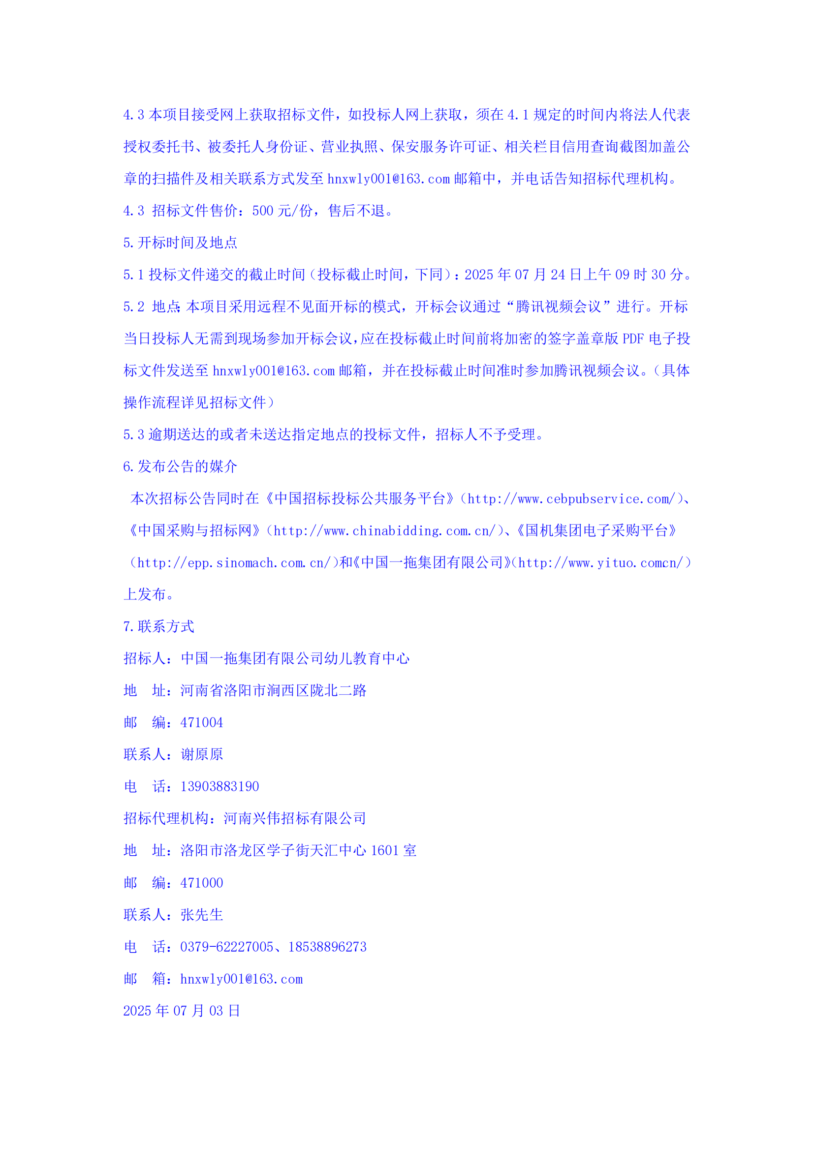 中国一拖集团有限公司幼儿教育中心保安、保洁服务项目