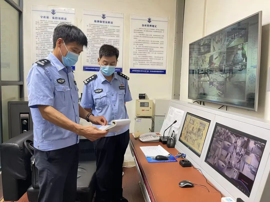 检查组一行在洛阳市治安和出入境管理支队、洛阳市保安协会、伊川县公安局治安大队相关同志的陪同下,来到洛阳市金盾保安服务有限公司实地察看了守护押运分公司枪支弹药管理运行情况,现场翻阅安全管理工作台账、疫情防控有关工作资料,对公司枪弹领交、日常管理和车辆行驶线路、实时定位等情况进行了细致的询问和检查,就枪弹管理、重点部位风险防控等问题进行了交流和探讨,并对金融人防岗点持证上岗及勤务情况进行了抽查。