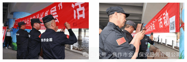 安全宣讲结束后,现场保安员在安全宣传条幅上进行了签名,并积极参与“安全生产月”网络知识现场答题活动。