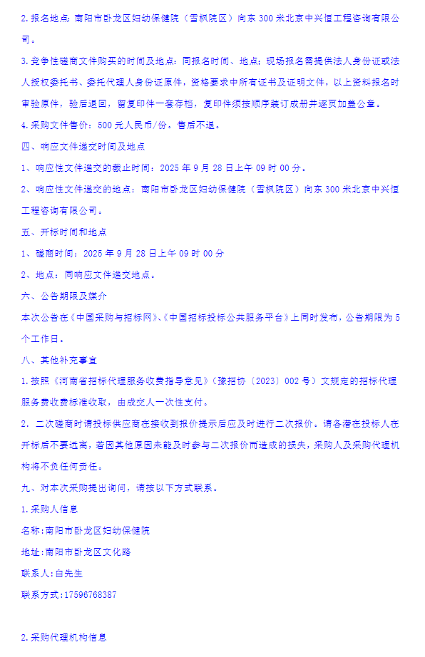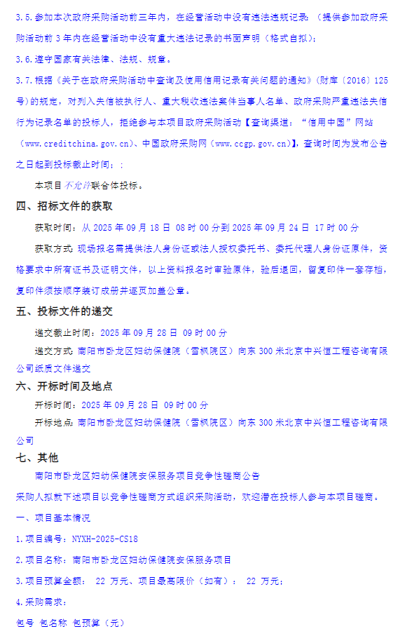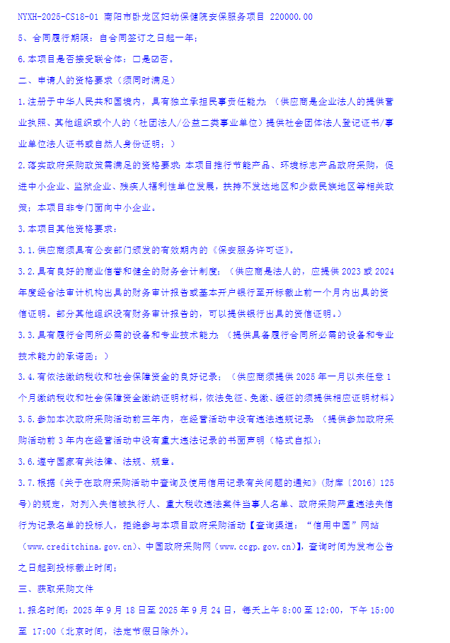 南阳市卧龙区妇幼保健院安保服务项目竞争性磋商公告