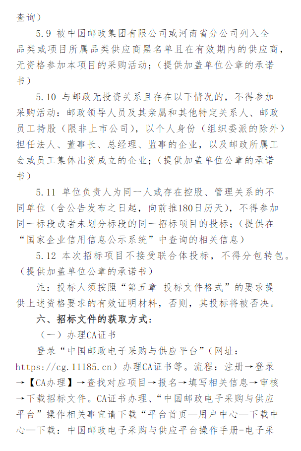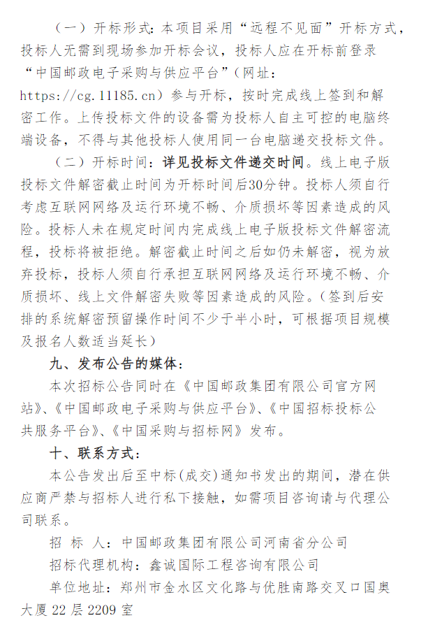 【中国邮政集团有限公司驻马店市分公司全市各单位门卫值守服务项目】招标公告