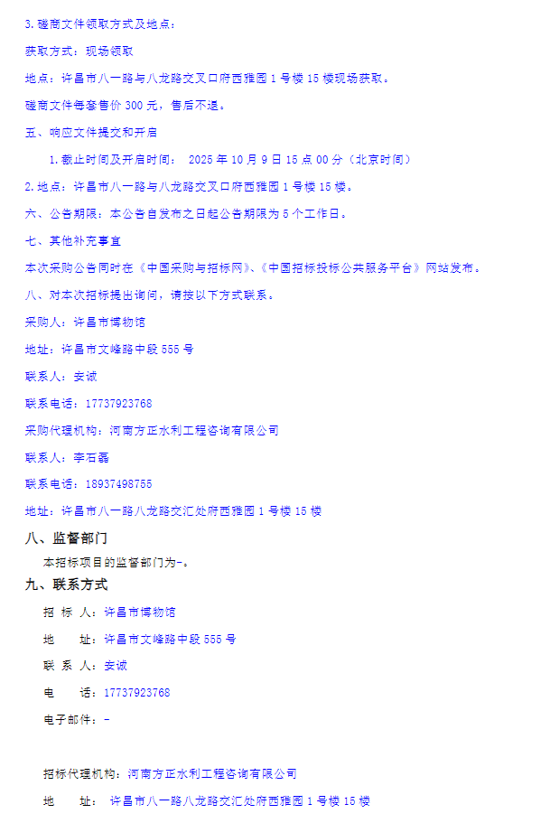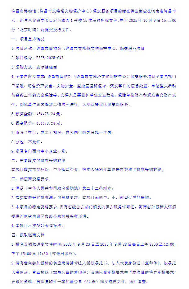 许昌市博物馆(许昌市文峰塔文物保护中心)保安服务项目竞争性磋商公告