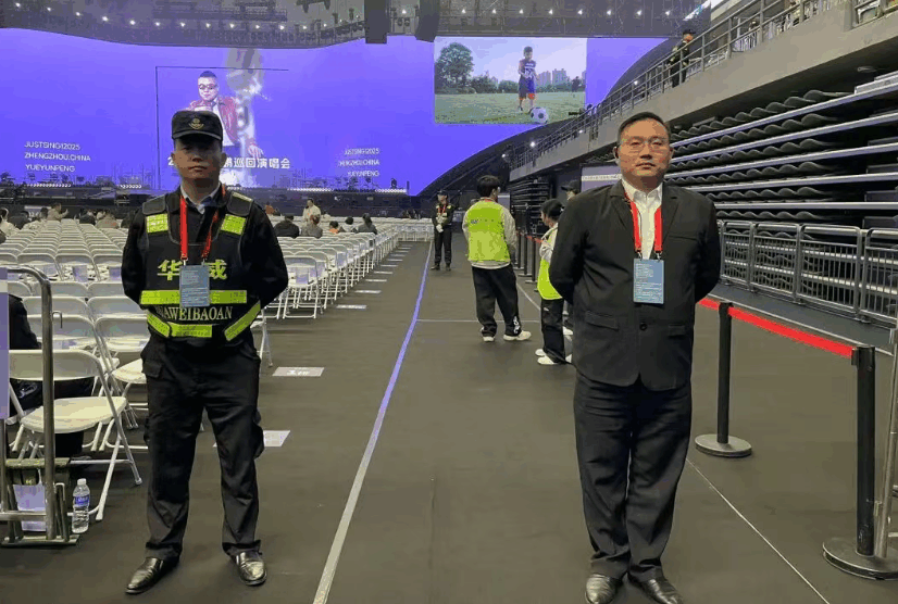 演出日下午两点,华威保安队员已全员到岗,开启“安全护航模式”:在内场入口,队员们高效核查票务;场馆内,从舞台侧方到看台过道,队员们定点值守,及时疏导起身合唱的观众,避免拥挤;后台区域,专人负责引导嘉宾动线,保障孙越、薛之谦等助演嘉宾顺利登场。