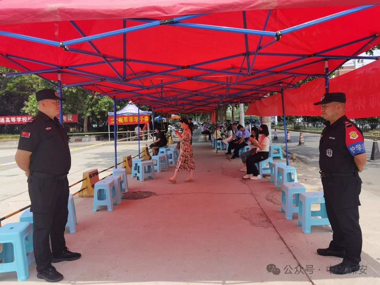 6月7日,2024年高考拉开帷幕,为切实做好各考点安保工作,全力维护各考场秩序,给莘莘学子营造一个良好的考试环境,郑州保安集团中原分公司高度重视,联合服务岗点学校,提前一周与辖区政府部门、交通公安部门沟通,进行周密部署,专门抽调精兵强将担负考场执勤工作,全力做好岗点2024年高考期间安保工作。