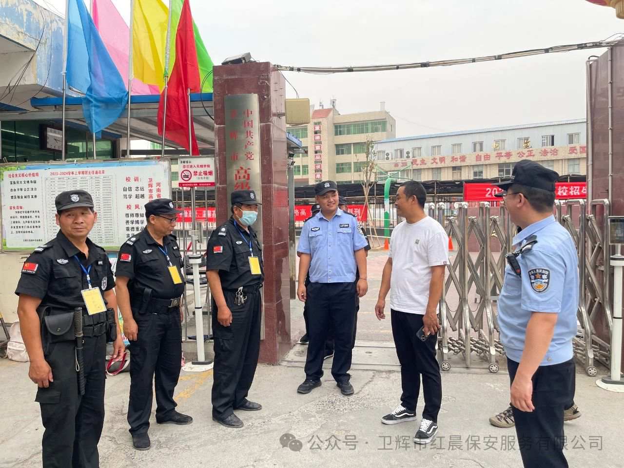 2024年6月7日,红晨保安高考服务人员早上一大早,就来到卫辉市考区高级中学考点,全身心地投入到高考服务当中。