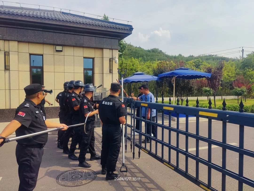 演练中“不法人员”企图冲击门岗,表达不合理诉求,应急处突分队迅速集合、穿戴装具,第一时间赶到“事发现场”,劝说无效后,及时将其制服,达到了演练的预期效果。
