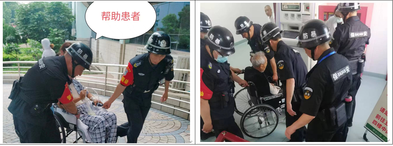 5月23日,医院门诊楼五楼和三楼住院的病人需要上下楼做检查和治疗需要帮助。接到通知,王风和队长马上安排巡逻队前去支援。从早上9点多开始,不断接到求助,巡逻队不辞辛劳,不顾炎热,上下往返,一次次把患者安全地接送。中午12点多了,一名重病患者由于长期卧床,现急需往门诊楼3楼中医外科就诊,队员们又不顾疲劳,把她抬上三楼,并在门口一直等到治疗出来,又把她安全送往病房楼。