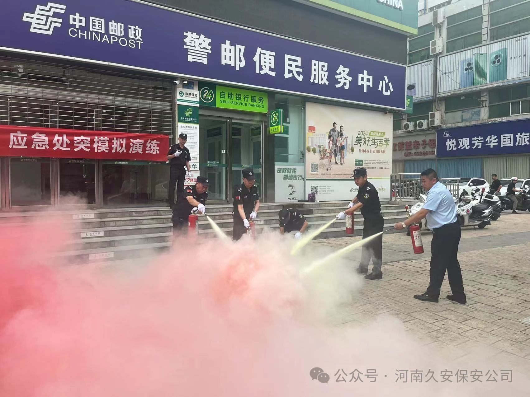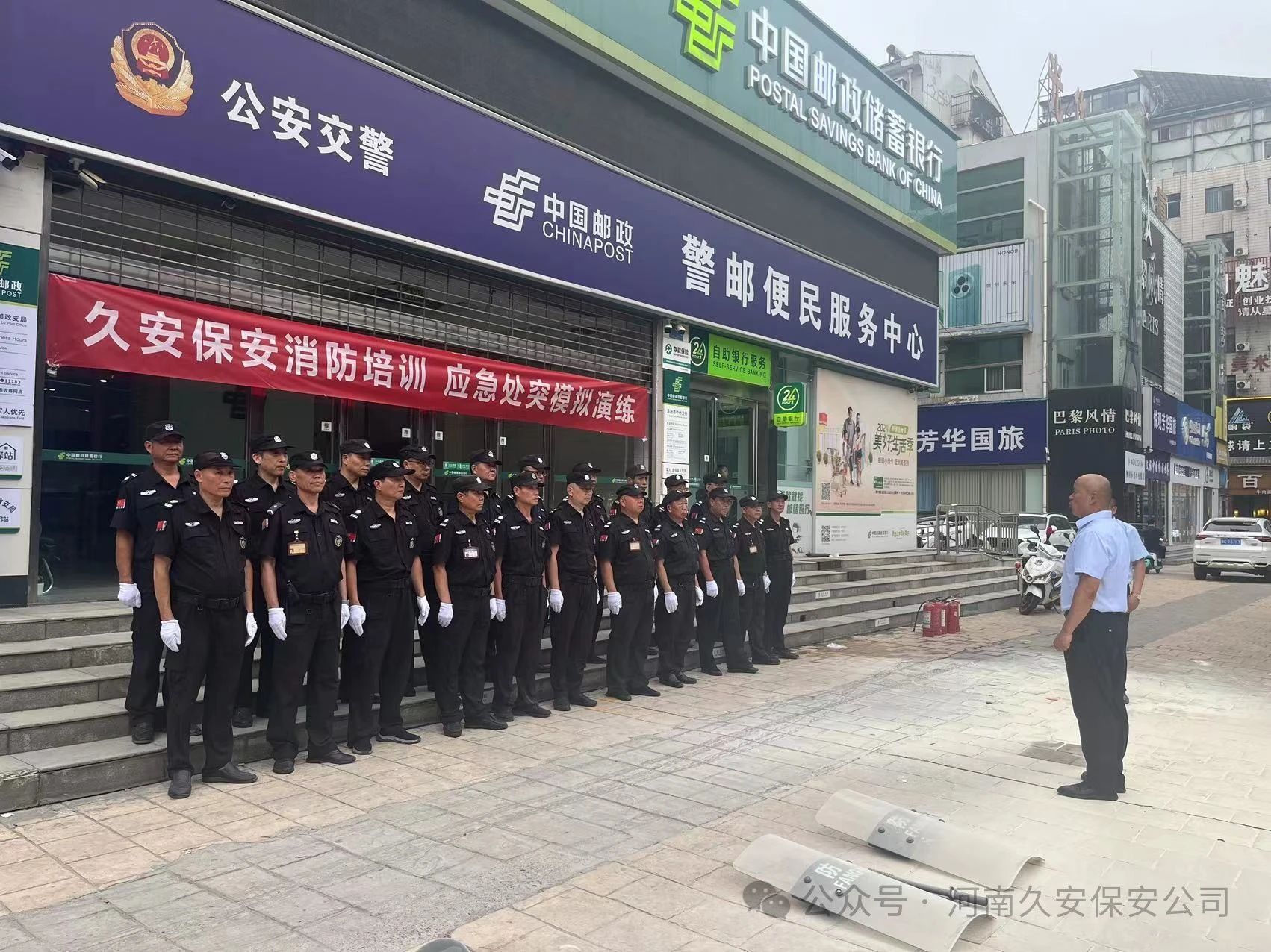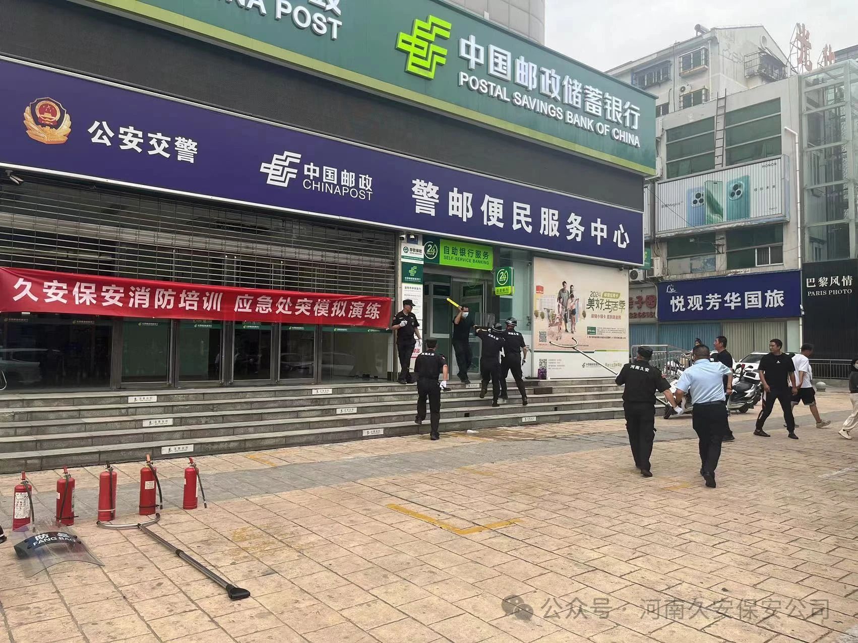 通过河南久安保安服务有限公司组织的2024年上半年消防培训、应急处突模拟演练,对进一步加强安全保卫工作,让队员们对金融机构安保的知识、消防安全知识得到了学习,对配备的器械使用方法,消防器材的使用方式,应急处突的方式有了更为深刻的认识。为银行财产的安全,做出有力的保障。