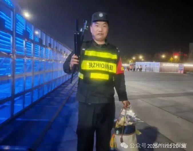 2025年11月15日晚,奥体中心黄子弘凡演唱会观众入场高峰过后,人潮渐缓。郑州保安集团经开分公司队员杨俊芳在初检口执勤时,目光无意间扫过不远处的花坛,发现一个遗落的挎包。