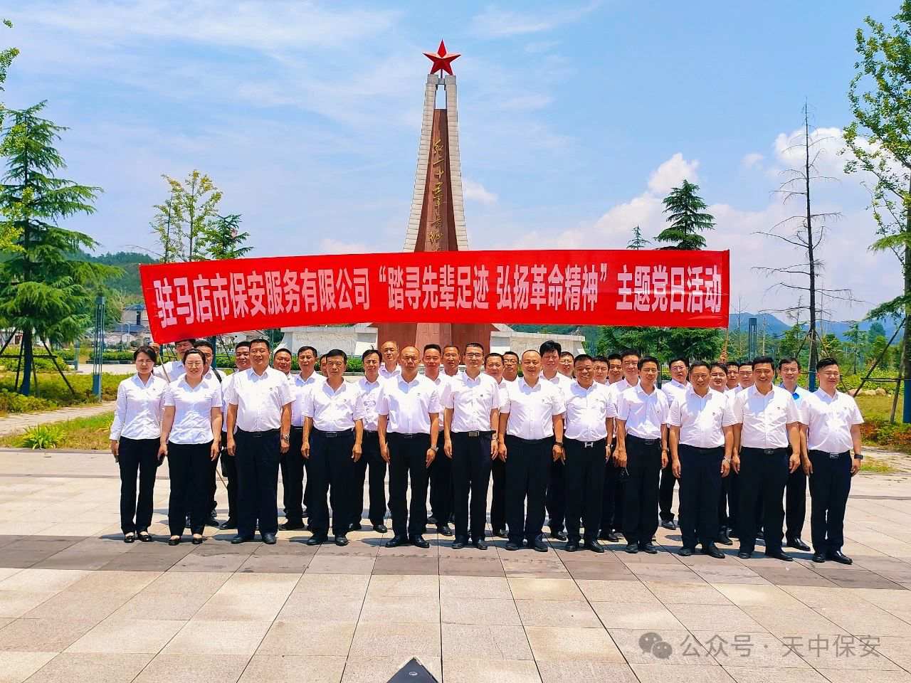 为激发公司全体党员继承革命传统、积极为公司做奉献的热情,不断丰富公司组织生活,6月27日,驻马店市保安服务有限公司党总支组织党员赴信阳罗山县铁铺乡红二十五军长征出发地何家冲红色教育基地开展以“踏寻先辈足迹弘扬革命精神”为主题的庆“七一”党日活动。