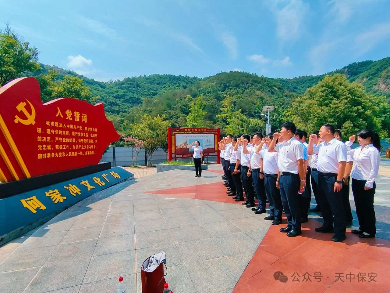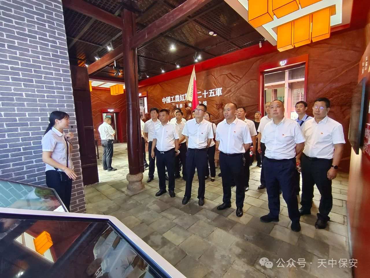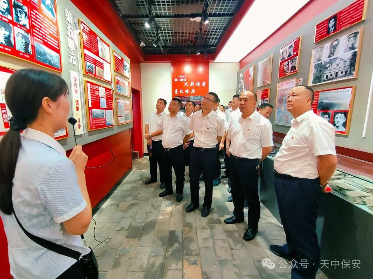 在参观的过程中,进行入党宣誓。全体党员佩戴着熠熠生辉的党徽,在纪念馆广场列队站立,面对党旗庄严举起右手,共同重温入党誓词,在党旗下接受心灵的净化和洗礼,共同回望红军走过的光辉历程,牢记中国共产党人的初心和使命,展望党和人民事业的光明前景。