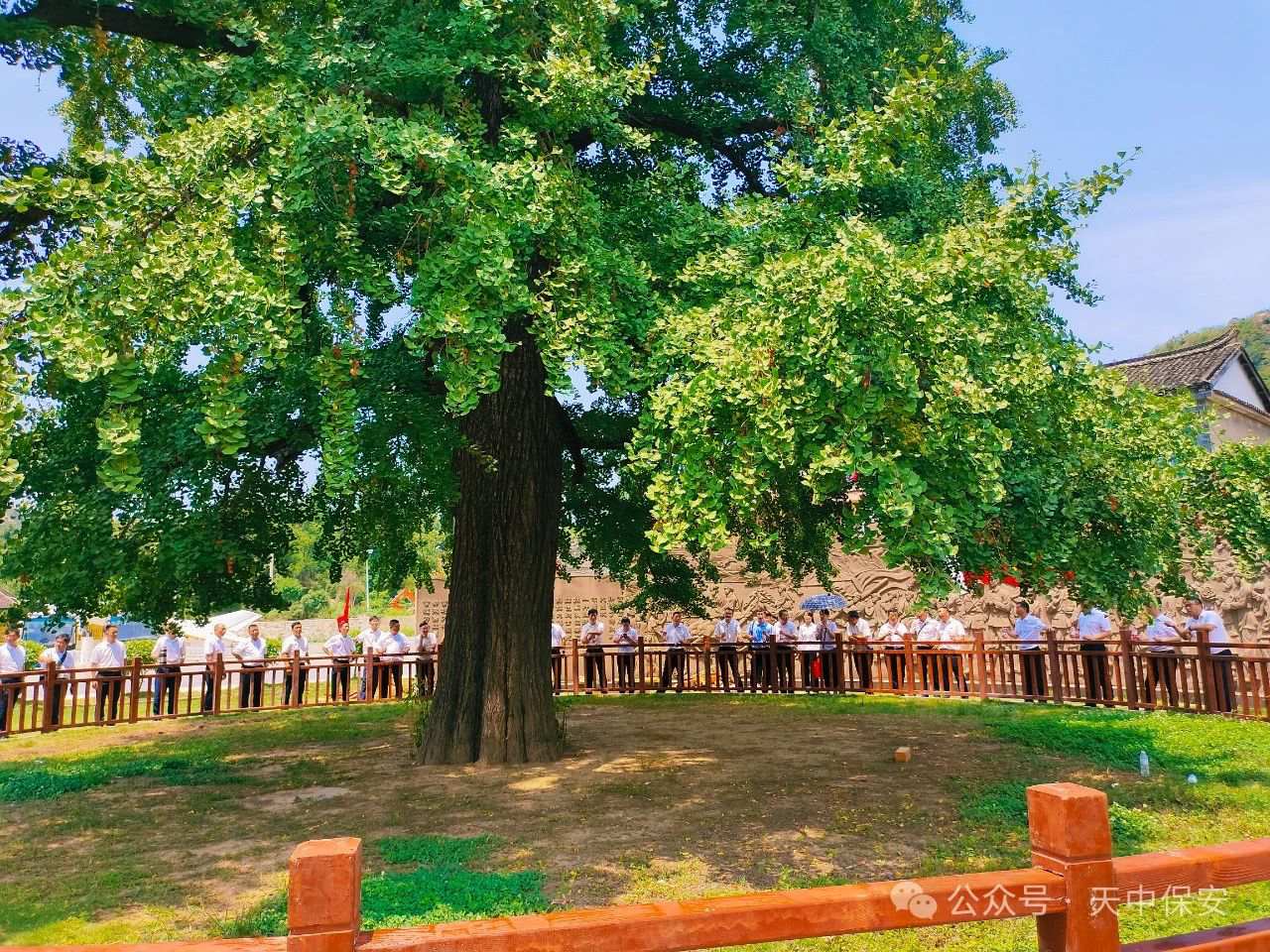 在银杏树下,同志们看到了这棵见证红军历史的老树,那一刻,历史仿佛与现实重合,多年前红军战士在此集合,多年后被先辈庇护长大的我们在这里又一次集合。如今的我们生长在和平年代,更要不负先辈意志,为祖国的发展建设贡献力量。