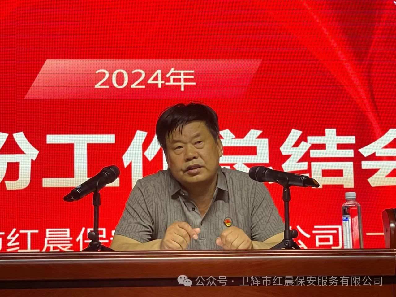 演出结束后,公司又召开了6月份工作总结会,董事长武术云在讲话中说:2024年7月1日是我党的103岁华诞,同时也是我们红晨保安公司成立18年的日子,我们公司能够取得今天的成绩,是与党的正确领导分不开的,没有共产党的正确领导,就没有红晨保安的今天,我们只有把公司做大做强,打造红晨保安品牌,把保安服务做到客户满意,才能报恩我们伟大的党,才能为党增辉为国增光。