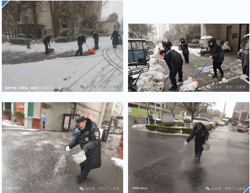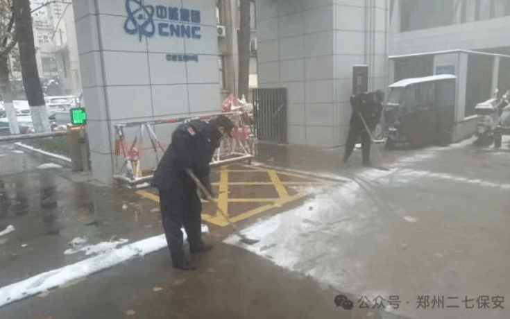 12月12日,郑州迎来今冬首场暴雪天气,雪花如鹅毛般倾泻而下,短短数小时便将城市装点成银装素裹的世界。但这场大雪也给市民出行带来极大隐患——路面结冰、视线模糊,安全隐患悄然滋生。危急时刻,郑保集团二七分公司的队员们化身“风雪清道夫”,手持扫帚、铁锹,在各自岗位执勤点,用行动为市民开辟出一条条“安全通道”。