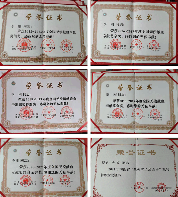 李刚同志成为造血干细胞捐献者,源于一次偶然的机会。2018 年4月中旬的一天,李刚带着孩子和老妈回老家看外婆,下午三点多,突然接到南阳市红十字会造血干细胞工作站的电话,2016年,在一次义务献血时,李刚了解到捐献造血干细胞可以挽救血液病患者的生命,于是留下了8毫升血样,成为一名光荣的造血干细胞捐献志愿者,这次与河北的一名白血病患者匹配上了。这是一个9岁的孩子,问李刚是否愿意帮助这个孩子,李刚当时一听没有多余的想法,什么也没有想就说,需要我怎么配合,怎么做?南阳市红十字会造血干细胞工作站的工作人员告诉他要保持身体健康、注意饮食、不喝酒、不献血、早晚锻炼身体,保持身体细胞的活跃状态。本来需要三个月的调养期,可是在将近一个月时间的五月十号,一个突发情况发生了,李刚同志接到通知,说这个小男孩病情极不稳定,需要直接去医院做体检及高分辨检测。 当时,李刚正在单位值夜班,第二天一早下班就去医院做了检测 ,等加急检测报告出来后,5月24日出发赶到郑州,每天早晚各一次到河南省肿瘤医院打动员剂,直至捐献造血干细胞完成,李刚同 志当时唯一的想法就是力所能及的去挽救一个鲜活的生命。 同时,李刚同志在爷爷一次重病住院手术,急需13袋血浆的事情也让他深刻地意识到,血液对患者的重要性,李刚同志毅然决然的参加了血站志愿者服务队,成为一名无偿献血志愿者,并一直未曾间断义务献血。李刚在岗位上默默无闻,不擅言谈,若不是这次捐献造血干细胞,他曾义务献血百余次的秘密仍将不被大家知道。