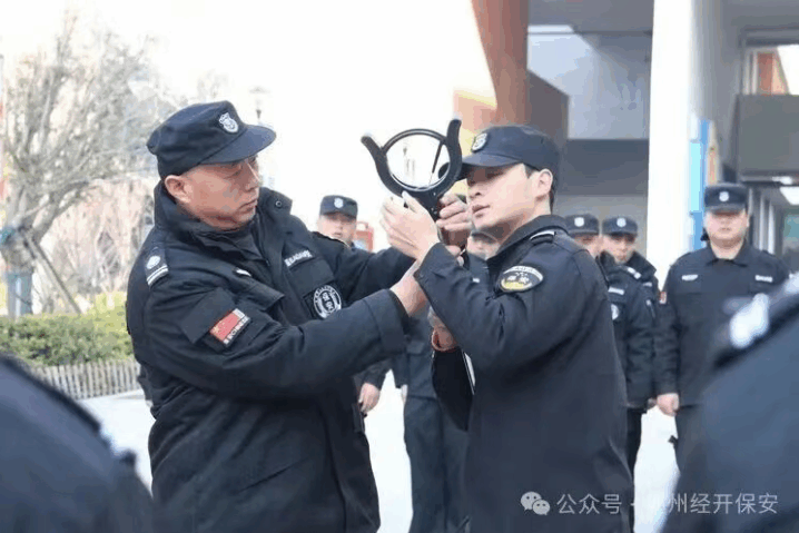 会议结束后,全体管理人员在室外开展防暴和消防器材实操培训,培训重点讲解防暴盾牌、钢叉、手提式干粉灭火器、消防水带等器材的操作规范。通过“示范+实操”模式,强化了管理人员安全管理履职能力。