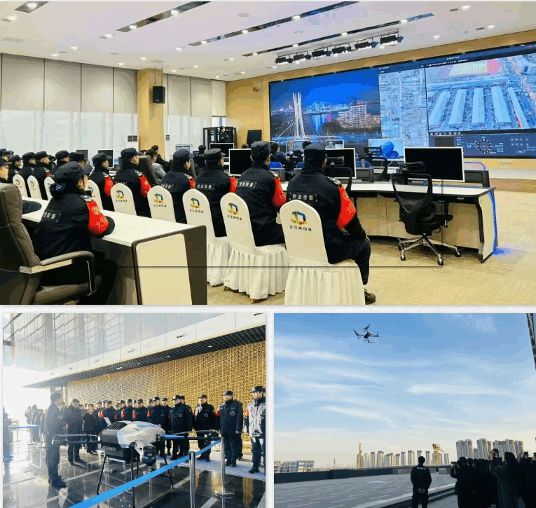 团队最后一站走进金岱科创城商务服务中心,现场观摩无人机低空飞行演示。通过近距离感受科技与安保服务的融合实践,进一步拓展了对“安保+”新业态的前沿认知。
