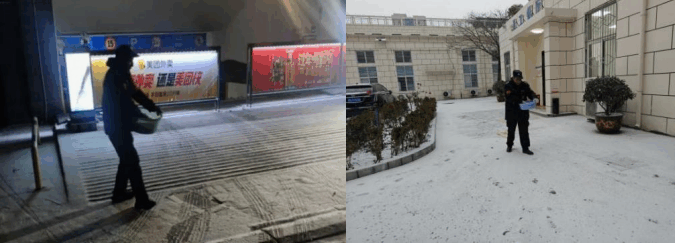 雪不停,人不歇,郑保集团直属三公司的队员们以雪为令,各岗点队员自发集结,拿起雪铲、扫帚,没有犹豫观望直奔责任区域。