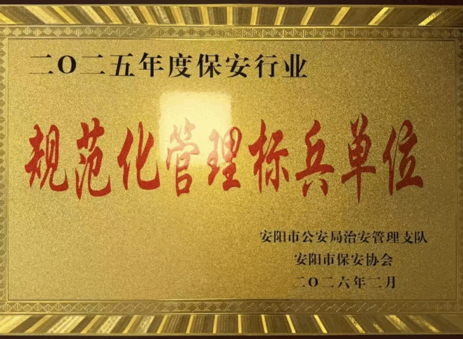 2月10日上午,安阳市保安协会2026年度工作会议隆重召开。会上,公司被授予“保安行业规范化管理标兵单位”荣誉称号,这是行业主管部门与协会对我司规范化建设、精细化管理与高品质安保服务的高度认可与充分肯定。