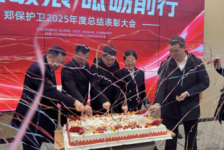 2025年,我们经历了“从零到一”,公司特意定制了纪念蛋糕。公司骨干团队共同上台切下纪念蛋糕,与郑保家人分享甜蜜、共庆成长。欢声笑语、蛋糕飘香,这一刻承载着全体郑保护卫人的汗水与荣光,也见证着公司从起步到成长的坚实足迹。