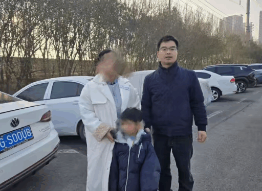 有着多年安保工作经验的郑红锡立刻快步上前,小心将孩子护送到路边安全区域。孩子满身泥泞、冻得小脸通红,受到惊吓的他既说不清楚家庭住址,也说不清楚家人名字,只能含糊说出母亲电话。郑红锡多次拨打该号码无人接听后,当即拨打110报警,向民警详细说明情况。